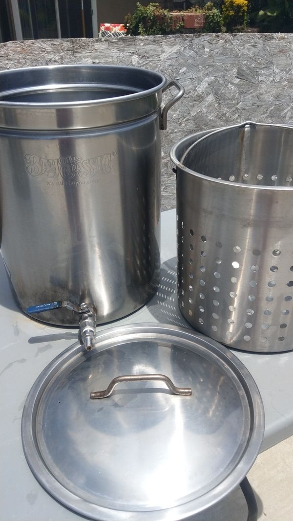 The bass pro shops® stainless steel pot with spigot is ideal for deep frying or boiling.